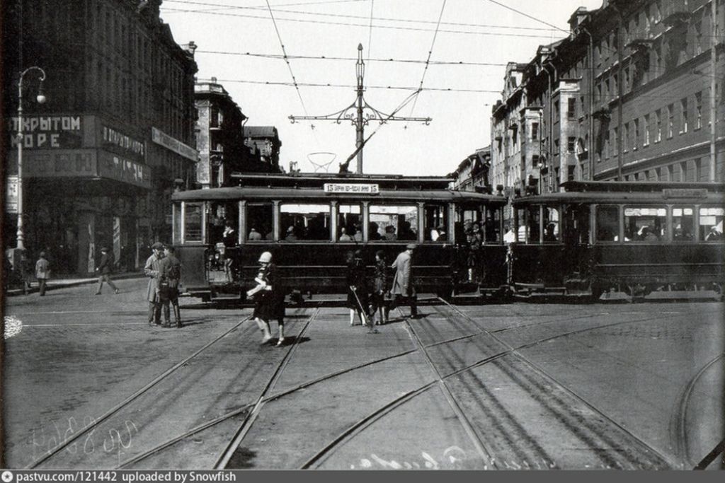 15.На фото Трамвай №15 на пересечении Невского и Литейно