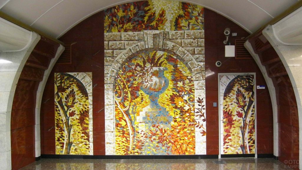 6.Мозаика в метро Бухарестская. Панно Осень в парке