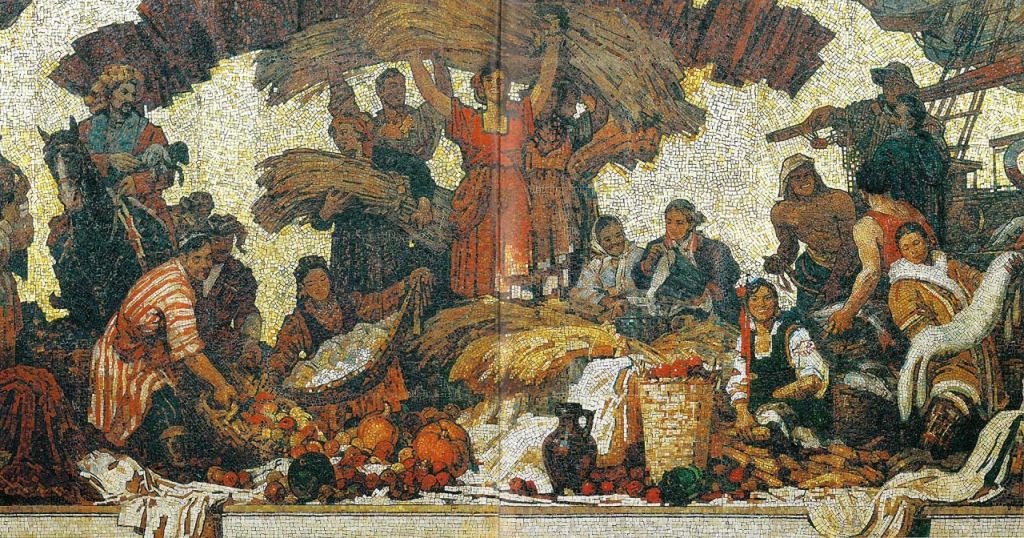 9.Панно «Изобилие» располагается над эскалатором метр?