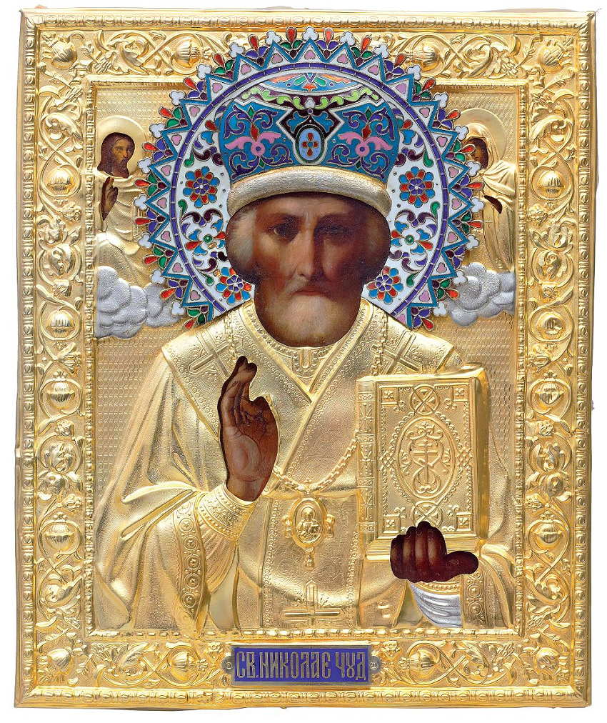 «Святой Николай Чудотворец» в серебряном окладе.
