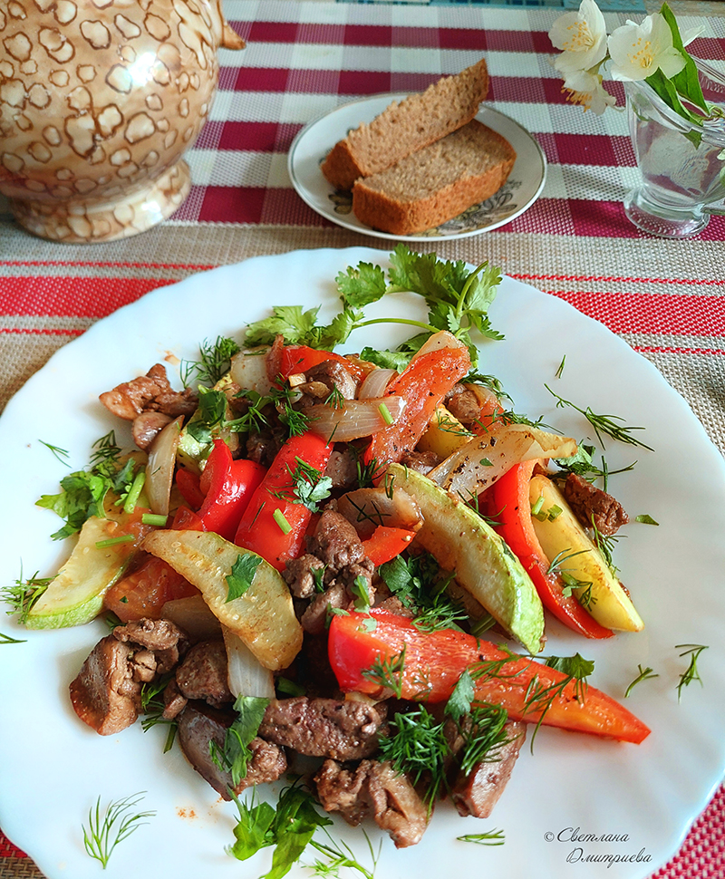 печень с овощами