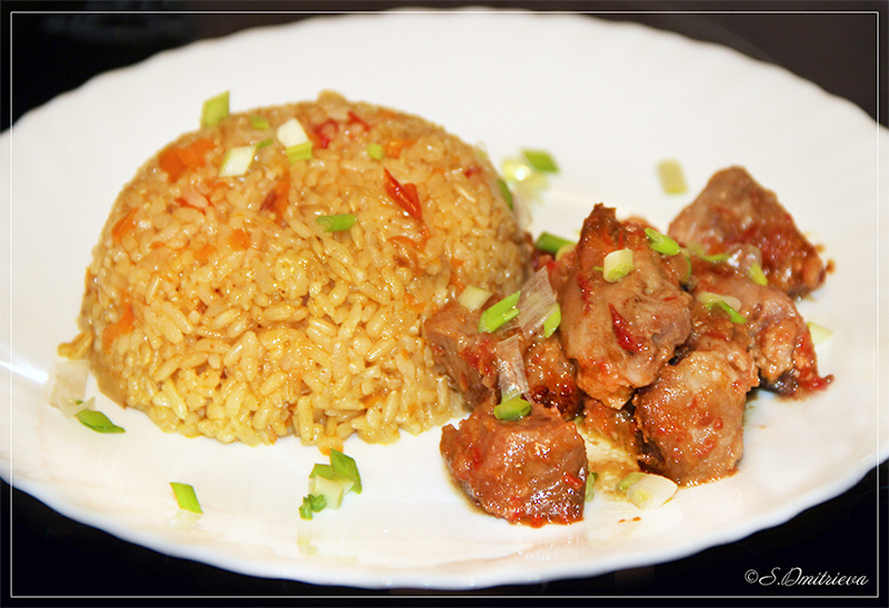 в баклажанном соусе и рис с овощами 1