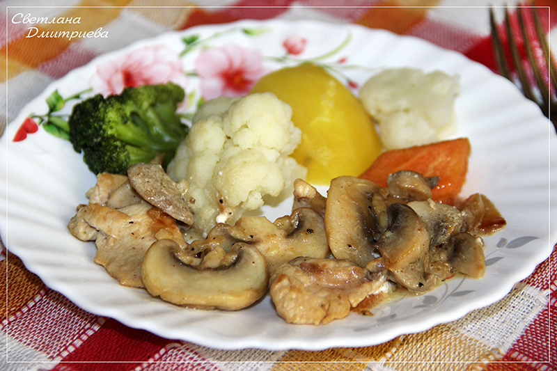 овощи с курицей и грибами