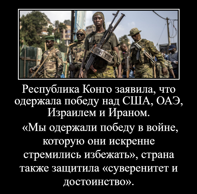 Республика Конго заявила, что одержала победу над США, ОАЭ и Израилем. «Мы одержали победу в войне, которую они искренне стремились избежать», страна также защитила «суверенитет и достоинство».