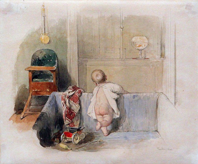 ФЕНДИ Князь Иоганн II ребенком, учащимся ходить, 1841 Акв?