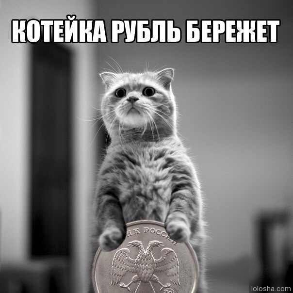 Котейка рубль бережёт.