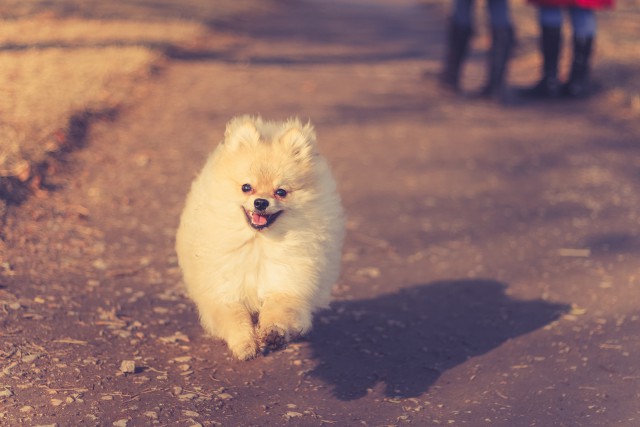 Наш шпиц Бридж на прогулке.